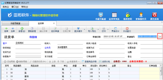 紅管家送貨單軟件、亞拓管理軟件等在單據保存的時候會自動生成單據編號,可根據此單據編號來查詢單據信息。為了更加自定義編號內容,軟件支持修改自動生成的單據編號,以送貨單軟件為例,示范如何修改已生成的單據編號。
