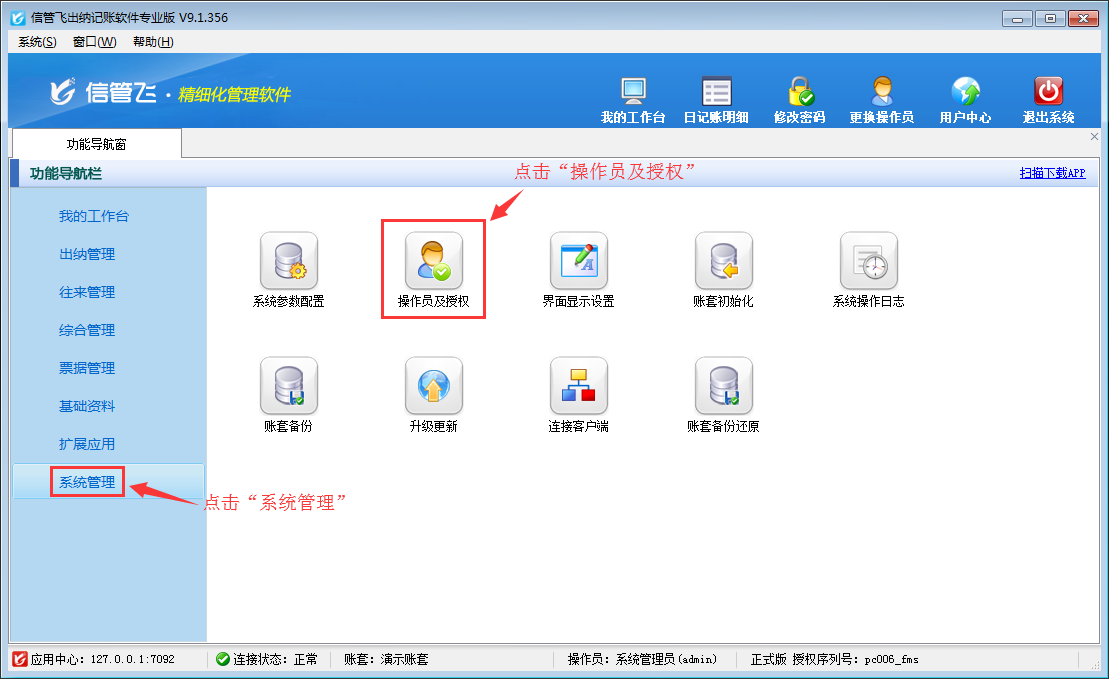 執行賬套初始化操作后,會刪除賬套內相應的數據,因此務必提前做好備份,謹慎操作!為了避免操作員誤操作,導致數據丟失,軟件內支持設置操作員不可進行賬套初始化操作,下面以信管飛出納記賬軟件專業版為例來演示一下具體的操作步驟。