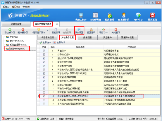 信管飛出納記賬軟件信管飛RMS標準版和專業版都支持設置操作員不可查看其他人員錄入的出納憑證的權限,本篇文章以信管飛出納記賬軟件專業版為例詳細介紹一下如何設置操作員不可查看其他人員錄入的出納憑證。