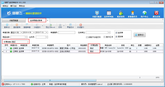 歡迎下載試用支持在單據明細查詢中擴展信息可作為查詢條件的送貨軟件:信管飛送貨單軟件