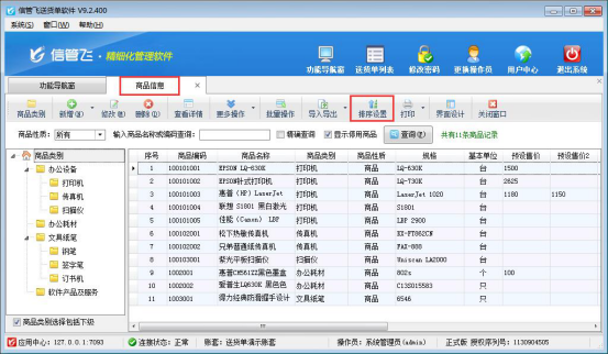 信管飛送貨單軟件、信管飛倉庫管理軟件、信管飛RMS軟件開單時都可以直接從商品信息中選擇已有的商品進行快速開單,軟件都支持對商品信息進行排序。開單添加明細時彈出的“選擇商品”窗口中商品信息顯示的先后順序如果需要調(diào)整,可以到商品信息中調(diào)整。下面我們以信管飛送貨單軟件為例介紹一下對商品信息排序的操作方法。