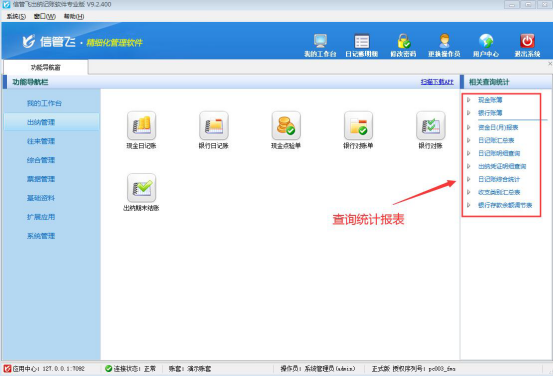 信管飛出納記賬軟件內(nèi)包含豐富的記賬統(tǒng)計表格,如現(xiàn)金賬簿、銀行賬簿、資金日(月)報表、收支類別匯總表等。如果不希望員工賬號登錄后導(dǎo)出這些報表,如何設(shè)置呢?本篇文章以信管飛出納記賬軟件專業(yè)版為例演示一下出納記賬軟件內(nèi)如何設(shè)置操作員不可導(dǎo)出現(xiàn)金及銀行賬簿。