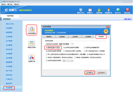 在功能導航窗點擊“系統管理”—》“系統參數配置”—》“出納參數”內打勾啟用“停用資金賬戶不顯示”參數,然后點擊“保存”按鈕保存配置。如下圖2所示: