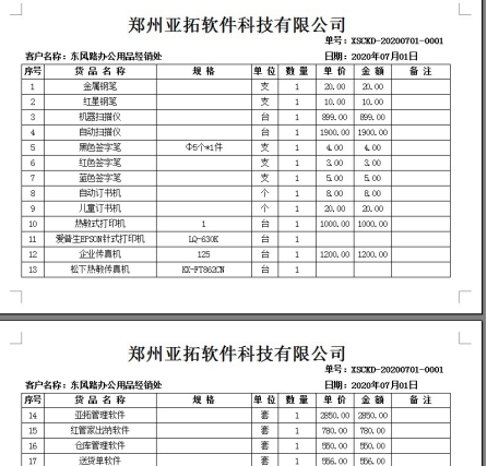 信管飛送貨單軟件、信管飛倉庫管理軟件、信管飛RMS軟件等都支持自定義設(shè)計打印模板。打印模板格式是根據(jù)打印紙張尺寸進行設(shè)計,如存在一頁打印不完的單據(jù),默認第二頁打印仍顯示表頭信息,如下圖所示,為了避免浪費,可設(shè)置表頭信息僅在第一頁顯示。本文以“信管飛送貨單軟件”為例,進行示范。