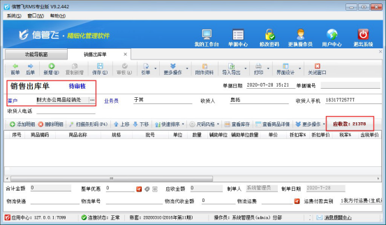 歡迎免費下載試用這款可以在銷售開單界面顯示客戶欠款信息的進銷存軟件信管飛RMS軟件
