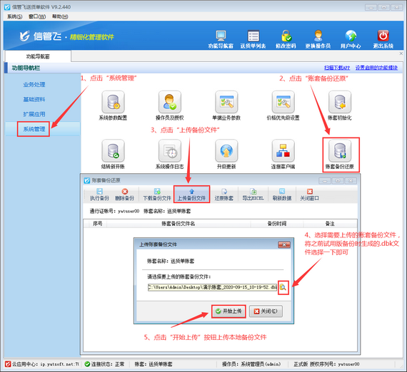本文以信管飛送貨單軟件為例,介紹一下云賬套模式如何上傳本地試用數(shù)據(jù)備份文件,并還原本地備份數(shù)據(jù)?