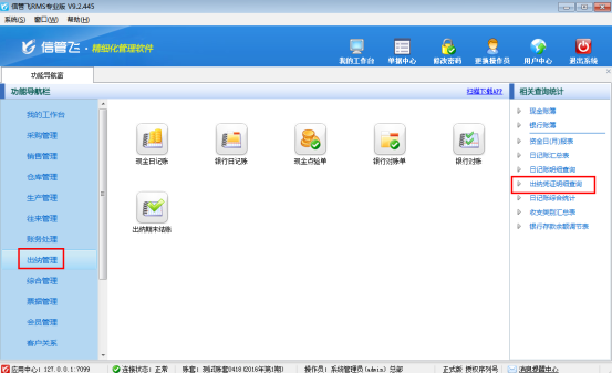 信管飛出納記賬軟件、信管飛RMS標準版和專業版在新增出納憑證時都支持錄入憑證明細,方便用戶錄入每個憑證的明細內容(系統默認沒有啟用憑證明細功能,啟用方法請參考:出納憑證如何啟用憑證明細功能?),軟件支持對憑證明細進行查詢統計,本篇文章以信管飛RMS專業版為例詳細介紹一下如何查詢出納憑證明細。