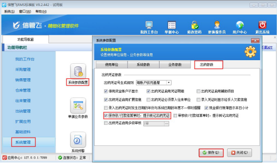 歡迎下載試用收/付款保存或?qū)徍藭r可提醒轉(zhuǎn)記出納憑證的軟件:信管飛RMS軟件