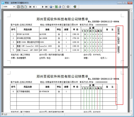 信管飛RMS軟件信管飛送貨單軟件等都支持打印單據,打印模板支持自定義設計格式,存在多聯單支持備注多聯內容,單據開單商品過多會默認根據紙張尺寸打印多頁,有存在多聯備注在打印第二頁的時候不顯示的情況,如下圖所示: