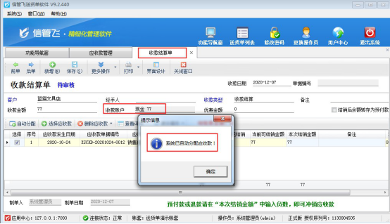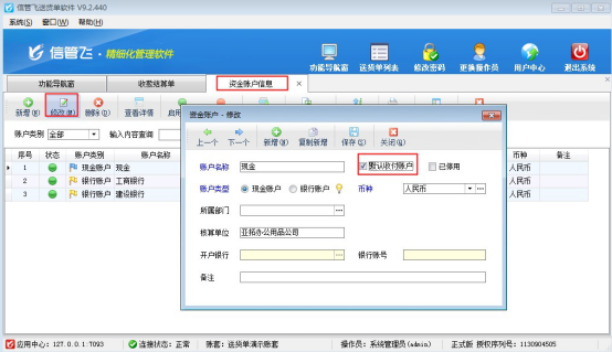 歡迎下載試用可默認資金賬戶進行收款的軟件:信管飛送貨單軟件