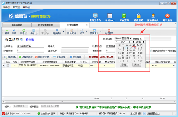 部分用戶在使用信管飛軟件過程中,會遇到如下圖所示的問題,對應(yīng)收應(yīng)付款進行收付款結(jié)算時,需要修改收付款結(jié)算日期,但是無法修改,本篇文章介紹一下此問題解決方法。