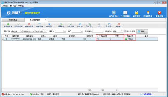 歡迎免費下載試用這款可在借款管理界面進行還款核銷的出納記賬軟件:信管飛出納記賬軟件