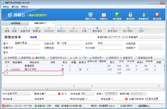 信管飛RMS軟件、信管飛倉(cāng)庫(kù)管理軟件、信管飛送貨單軟件等都支持開單直接添加商品明細(xì),部分用戶在剛開始使用軟件時(shí),開單添加一個(gè)商品后,不清楚如何在單據(jù)明細(xì)內(nèi)繼續(xù)增加新的商品信息,如下圖所示,此問題在鍵盤上面按方向下鍵即可在單據(jù)明細(xì)中增加一行新行,另外軟件也支持設(shè)置在單據(jù)明細(xì)中添加商品后自動(dòng)增加新行,本文以信管飛RMS軟件為例介紹下新開單據(jù)添加商品后自動(dòng)增加新行如何設(shè)置?