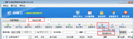 本文以“出納現(xiàn)金日記賬”為例進(jìn)行示范導(dǎo)入操作,導(dǎo)入需要特定模板,可以在現(xiàn)金日記賬界面導(dǎo)出Excel文件作為模板,然后打開Excel文件整理之前的日記賬憑證,如何導(dǎo)出憑證Excel模板如下圖所示: