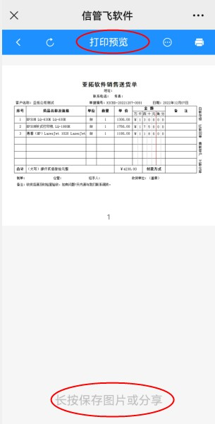 點(diǎn)擊“打印預(yù)覽”可顯示默認(rèn)模板的打印預(yù)覽圖,可長按保存圖片或分享,如下圖所示: