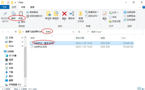 在賬套源文件夾Data中,選擇當前賬套文件,點擊復制粘貼操作,復制一個源文件副本,如下圖所示: