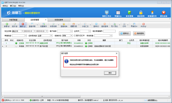 生成客戶預付款記錄的相關收款結算單刪除后,客戶預付款記錄即可同步刪除,返回應收款管理界面查詢應收款信息,剛剛需要刪除的“客戶預付款”記錄已無法查詢到。
