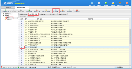 切換“系統(tǒng)管理員”登錄,在功能導(dǎo)航窗點擊“系統(tǒng)管理”—》“操作員及授權(quán)”進入操作員管理及授權(quán)界面,選中操作員“張亞”,點擊“其他操作權(quán)限”,勾選“可修改單據(jù)編號”權(quán)限,勾選后點擊保存。