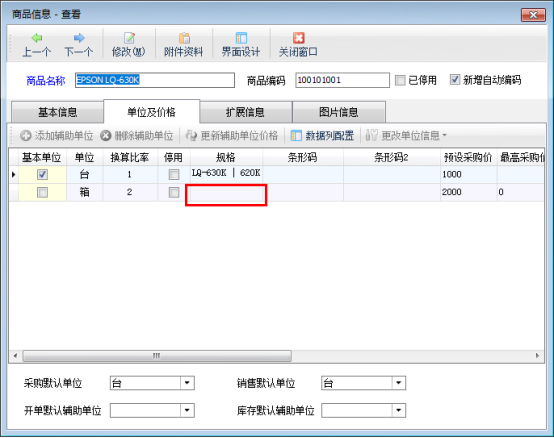 此功能僅支持輔助單位規(guī)格和基本單位規(guī)格一致時操作,不一致需要自己手動輸入。