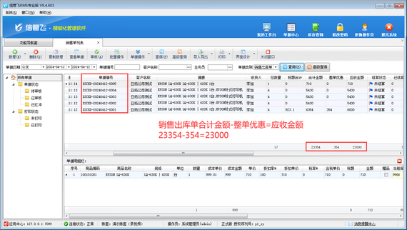 而銷售出庫單是根據(jù)合計金額 - 整單優(yōu)惠=應(yīng)收金額進行計算,如下圖所示。