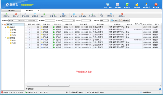 以銷售單列表為例,進入銷售單列表界面,可以看到單據明細欄并未顯示出來,如圖:
