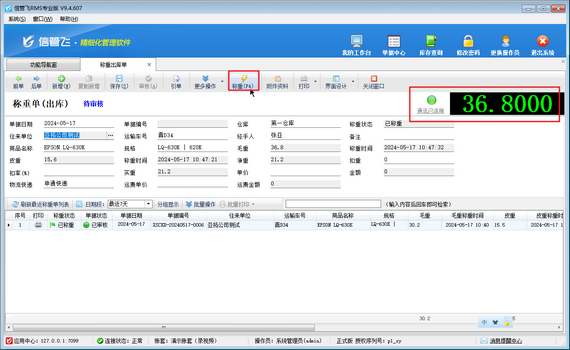 使用信管飛軟件的地磅稱重功能,您可以輕松實現(xiàn)快速、準確的稱重。軟件支持多種稱重設(shè)備,能夠?qū)崟r讀取地磅數(shù)據(jù),并自動記錄每一次稱重結(jié)果。這不僅提高了工作效率,還減少了人為誤差,讓您的稱重工作更加精準可靠。