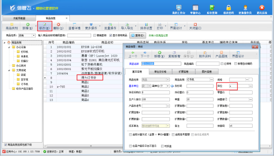 在功能導航窗點“基礎資料”—》“商品信息”進入“商品信息”界面,選中商品點擊修改,錄入貨位,點擊保存。