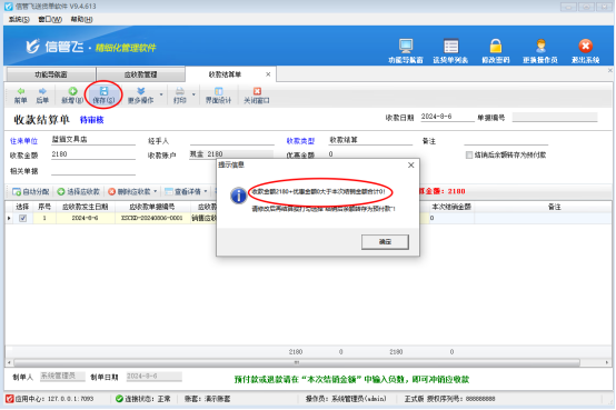 演示視頻觀看鏈接:收款保存提示“收款金額大于本次結銷金額”,如何解決?