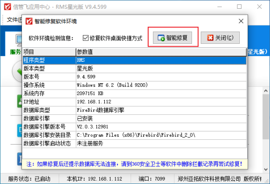 如智能修復軟件環境完成后,重啟應用中心程序數據庫狀態仍顯示為連接失敗,請聯系我們在線客服解決。