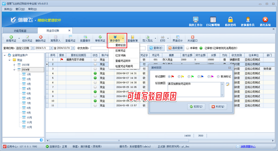 總之,信管飛出納記賬軟件的可復(fù)核駁回憑證功能,是中小企業(yè)提升財(cái)務(wù)管理效率、確保財(cái)務(wù)數(shù)據(jù)準(zhǔn)確性的得力助手。隨著技術(shù)的不斷進(jìn)步,信管飛將持續(xù)優(yōu)化產(chǎn)品,為企業(yè)用戶提供更加智能、高效的財(cái)務(wù)管理解決方案。