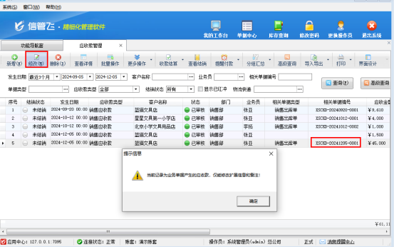 【注意】:僅未結(jié)銷狀態(tài)下的應(yīng)收款可支持修改操作。