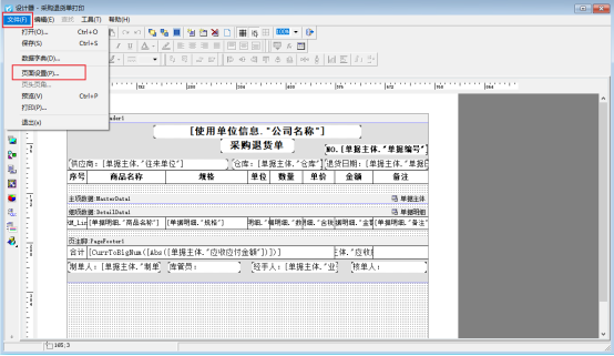信管飛系列軟件支持自定義設計打印模板格式,打印預覽顯示正常,遇到紙張打印出來內容缺失一部分的問題。以采購退貨單打印模板為例,示范下如何解決打印缺失一部分內容的問題?