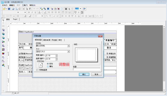 單據界面點擊打印----打印格式設計----點擊設計格式,進去模板設計器界面,在模板設計器界面調整打印紙張頁面設置。