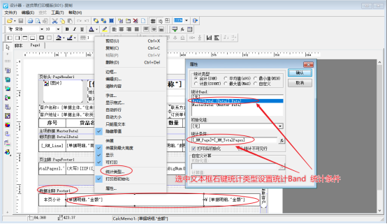 如最后一頁(yè)需要同時(shí)顯示本頁(yè)小計(jì)及總計(jì)的情況下,可以添加欄目“數(shù)據(jù)注腳”。然后在“數(shù)據(jù)注腳”內(nèi)設(shè)置最后一頁(yè)的金額小計(jì),添加計(jì)算文本框,計(jì)算最后一頁(yè)小計(jì)。計(jì)算文本框統(tǒng)計(jì)欄目:細(xì)項(xiàng)數(shù)據(jù)DetailData1 統(tǒng)計(jì)條件為:[_RM_Page]=[_RM_TotalPages]