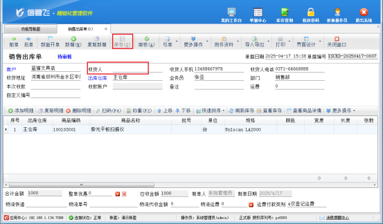 設置完成后,再開單時即使不輸入收貨人信息,也能輕松保存成功。這種靈活的設置方式,讓企業(yè)能夠根據(jù)自身業(yè)務需求和客戶要求,自由調(diào)整開單流程,無需為了適應軟件而改變業(yè)務流程,真正實現(xiàn)了軟件為企業(yè)服務。