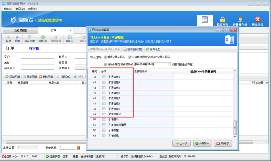 信管飛軟件支持通過Excel導入數(shù)據(jù),通過Excel數(shù)據(jù)導入可以將數(shù)據(jù)方便快捷的導入到軟件中,省去了使用初期大量的數(shù)據(jù)的錄入所要消耗的時間及人力物力,并避免人為錄入的誤差,使數(shù)據(jù)錄入的簡單、準確、高效。然而,部分客戶使用的擴展信息字段比較多在導入明細數(shù)據(jù)時可能會遇到擴展信息10之后的擴展字段不顯示。下面我們以“信管飛送貨單軟件”為例,介紹下出現(xiàn)這種情況如何解決?