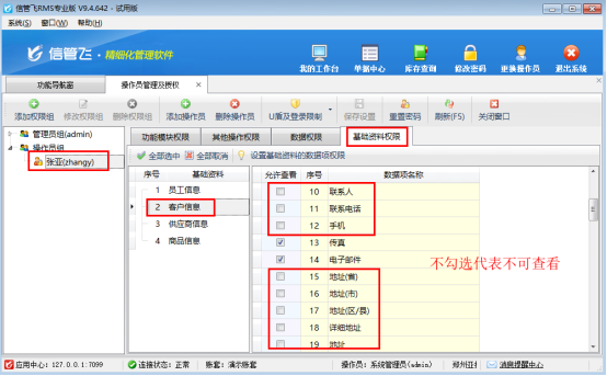 在企業(yè)進(jìn)銷存管理中,客戶、供應(yīng)商、商品等基礎(chǔ)資料是核心資產(chǎn),其中往往包含大量敏感信息,例如客戶聯(lián)系方式、地址、業(yè)務(wù)歸屬等。如果這些信息對所有操作員完全開放,可能導(dǎo)致數(shù)據(jù)泄露、信息濫用等風(fēng)險(xiǎn)。