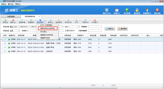 完成界面配置后,用戶只需在工具欄的“更多操作”中點(diǎn)擊“刷新列表中出納憑證”,系統(tǒng)就會(huì)自動(dòng)更新列表信息。此時(shí),那些已經(jīng)轉(zhuǎn)記了出納憑證的收款結(jié)算單就會(huì)顯示憑證字和憑證號(hào),而未轉(zhuǎn)記的則顯示為空白。