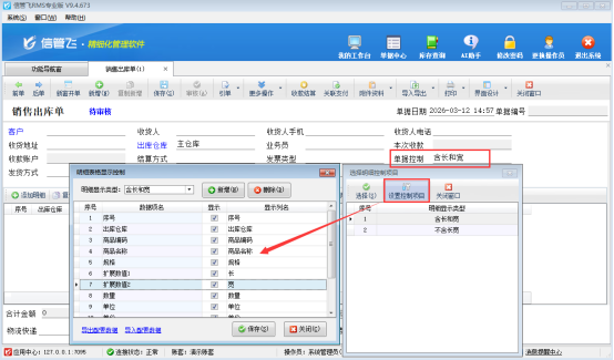 第二步,配置完成后,在開單界面點擊“設置控制項目”,可新增控制規則(如“含長和寬”“不含長寬”),分別配置對應顯示數據項,適配不同場景。