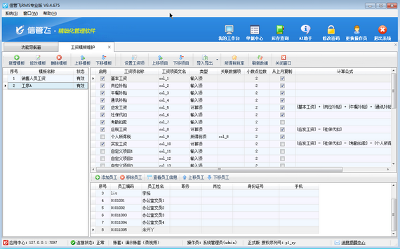 進(jìn)入維護(hù)界面:在功能導(dǎo)航窗點(diǎn)擊“綜合管理”—》“工資模板維護(hù)”,打開工資模板維護(hù)界面。