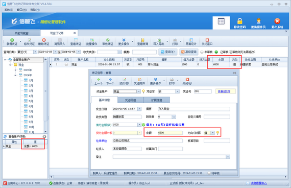 出納記賬軟件支持設(shè)置多個操作員賬號并對操作員賬號設(shè)置權(quán)限,有用戶登錄軟件無法查看出納日記賬資金賬戶余額,如下圖所示: 演示視頻觀看鏈接:操作員無法查看出納日記賬資金賬戶余額,如何解決演示視頻 出現(xiàn)以上問題的原因是:當(dāng)前登錄的操作員賬號沒有查看出納日記賬資金賬戶余額的權(quán)限。 &nb