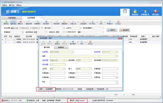 信管飛送貨單軟件支持設(shè)置多個操作員并對操作員賬號設(shè)置操作權(quán)限,有用戶登錄軟件無法修改應(yīng)收款信息,系統(tǒng)彈出提示“當(dāng)前記錄為其它操作員錄入的,您沒有權(quán)限修改!”,如下圖所示。 演示視頻觀看鏈接:操作員無法修改其他人員錄入的應(yīng)收款,如何解決演示視頻 出現(xiàn)以上問題的原因是:當(dāng)前登錄的操作員賬號沒有