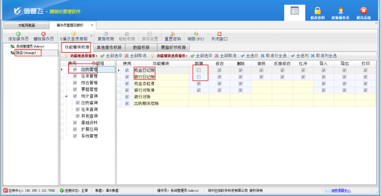 此文章相關(guān)演示視頻:如何設(shè)置操作員不能新增日記賬演示視頻 信管飛出納記賬軟件支持新增、修改現(xiàn)金/銀行日記賬憑證,有些客戶在使用過程中,不需要操作員進(jìn)行新增,只用查看憑證即可,軟件支持設(shè)置操作員權(quán)限,本篇文章介紹下如何操作? &nb