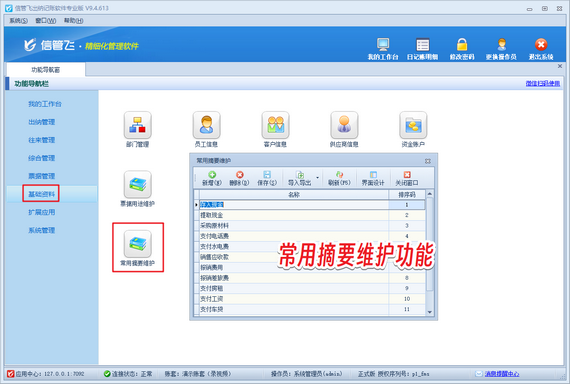 在快節(jié)奏的商業(yè)環(huán)境中,規(guī)范化的財務(wù)流程是企業(yè)高效運轉(zhuǎn)的基石。許多企業(yè)在使用出納記賬軟件時,常因憑證摘要隨意填寫導致賬目混亂、對賬困難。針對這一痛點,信管飛出納記賬軟件創(chuàng)新推出“摘要智能管控”功能,通過三步操作即可實現(xiàn)摘要規(guī)范化管理,讓財務(wù)數(shù)據(jù)更精準、流程更可控。 一鍵開啟規(guī)范模式:登錄軟件后,進入【系統(tǒng)管理】-【系統(tǒng)參數(shù)配置