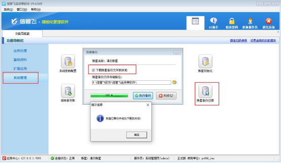 信管飛倉(cāng)庫(kù)管理軟件、信管飛出納記賬軟件、信管飛送貨單軟件、信管飛RMS等本地版軟件賬套數(shù)據(jù)默認(rèn)存儲(chǔ)在軟件安裝目錄下,支持對(duì)賬套數(shù)據(jù)進(jìn)行備份,如需要更換主機(jī)電腦,需要在原來(lái)的主機(jī)電腦上備份賬套數(shù)據(jù),將生成的備份文件復(fù)制到新的主機(jī)電腦上,然后在新的主機(jī)電腦上安裝軟件,使用備份文件還原數(shù)據(jù)即可。用戶在備份賬套時(shí)遇到備份失敗的情況,該如何處理?
