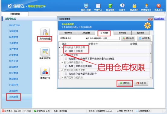 在使用信管飛軟件進(jìn)行新增倉(cāng)庫(kù)時(shí),是否遇到過(guò)這樣的困擾:操作員在倉(cāng)庫(kù)信息界面新增了倉(cāng)庫(kù),卻發(fā)現(xiàn)新增的倉(cāng)庫(kù)信息如同“石沉大海”,根本無(wú)法顯示,這嚴(yán)重影響了工作效率,出現(xiàn)這種問(wèn)題的主要原因在于該操作員賬號(hào)沒有分配到倉(cāng)庫(kù)權(quán)限導(dǎo)致的,本篇文章介紹下如何解決? 首先,切換系統(tǒng)管理員登錄,功能導(dǎo)航窗點(diǎn)擊“系統(tǒng)管理”