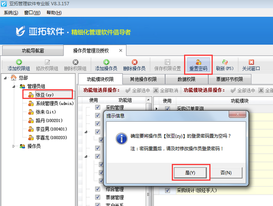 亞拓管理軟件、亞拓倉(cāng)庫(kù)管理軟件、紅管家送貨單軟件、紅管家財(cái)務(wù)出納記賬系統(tǒng)、紅管家票據(jù)打印軟件等都可以實(shí)現(xiàn)多個(gè)操作員登錄使用軟件的功能,如果使用過(guò)程中把操作員密碼忘了應(yīng)該怎么辦?下邊我們就具體以亞拓管理軟件專(zhuān)業(yè)版為例進(jìn)行詳細(xì)介紹如何重置操作員密碼。 重置操作員密碼需要以系統(tǒng)管理員登錄軟件,如圖1所示:&