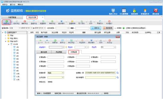 紅管家出納記賬軟件(標準版和專業版)、亞拓管理軟件(標準版和專業版)中的出納管理模塊,在新增憑證中有的需要填寫擴展信息,軟件支持設置在新增憑證時錄入擴展信息。下面我們以紅管家出納記賬軟件專業版為例,講一下如何設置出納憑證啟用擴展信息。 打開“系統管理”—》“系統參數配置”,在“出納參數”界面勾選“出納憑證啟用擴展信息”然后保