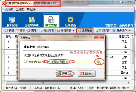 送貨單單機版指一人一臺電腦使用,使用時需要插入加密鎖,鑒于很多客戶有時候需要更換電腦使用,這次介紹下如何更換電腦使用。 送貨單單機版更換電腦需要首先把原來的電腦做好備份工作,備份是在電腦的應(yīng)用中心(紅色圖標(biāo))上進(jìn)行操作。備份時可以選擇備份的保存路徑,為了更清晰的看到備份數(shù)據(jù)方便拷貝,可以把備份路徑更改