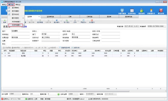 紅管家送貨單軟件、紅管家倉庫管理軟件、紅管家出納記賬軟件、紅管家票據(jù)打印軟件和亞拓管理軟件都可以同時打開多個業(yè)務(wù)單據(jù)窗口,方便用戶對不同的業(yè)務(wù)單據(jù)進(jìn)行切換窗口查看信息等操作。打開多個窗口界面后,需要關(guān)閉這些已打開的窗口時,可以逐個關(guān)閉各個窗口,也可以一次性關(guān)閉所有窗口,如何快速關(guān)閉所有已打開窗口呢? 我們以送貨單軟件為例,示